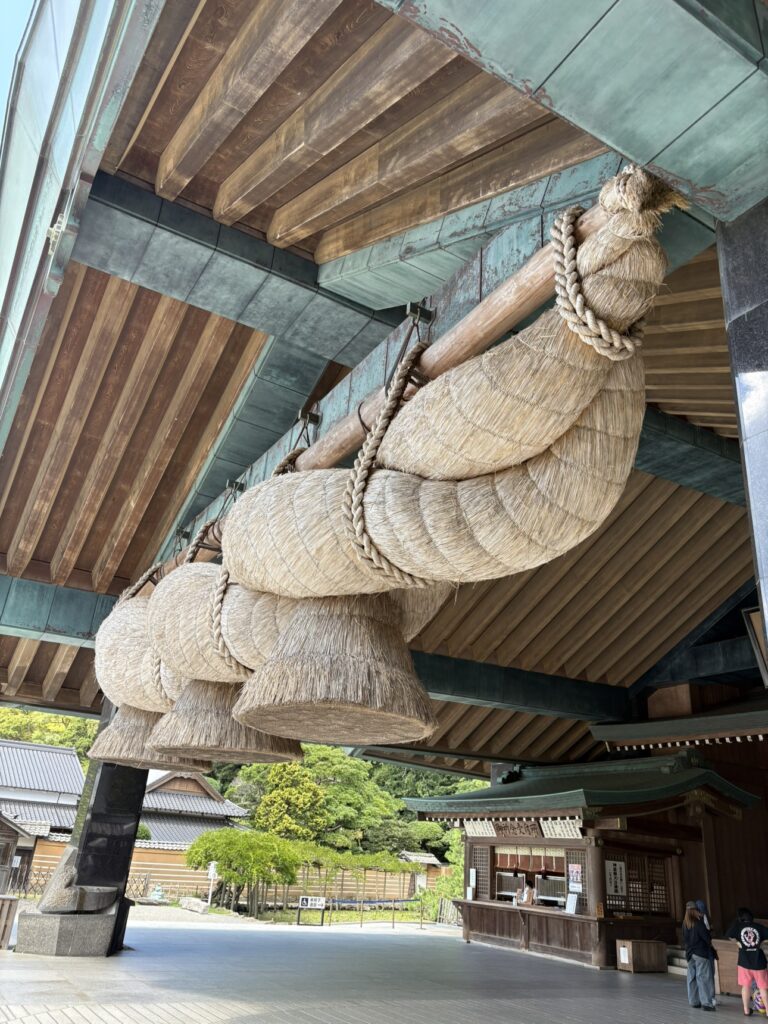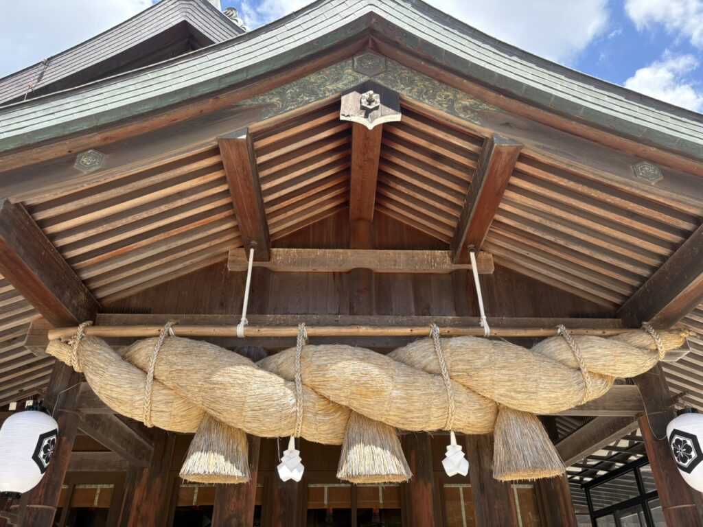 戦後最大の木造神社建築物との事です。しめ縄も凄い❗