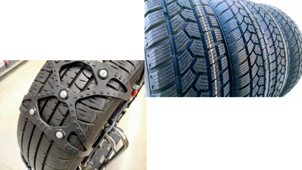 タイヤチェーン : 「スタッドレスでも登れないような坂道や、緊急時」のためのブースター。